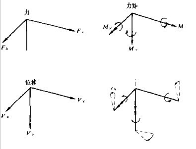 圖1-1作用于橋梁支座的反力、位移和轉(zhuǎn)角